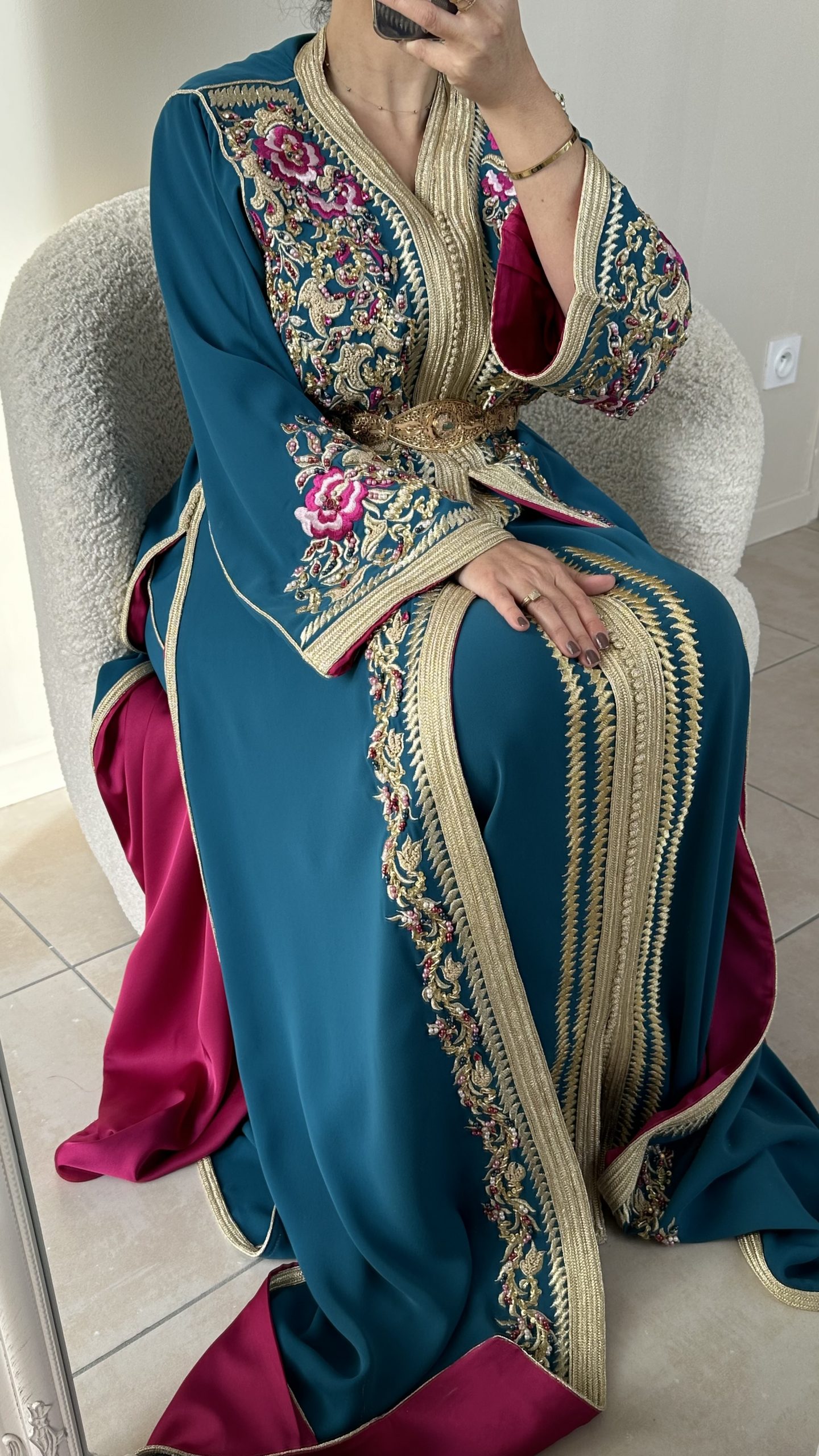-Une caution sera également requise. Elle vous sera restituée après vérification de l’état du caftan ou de la tekchita lors de son retour.