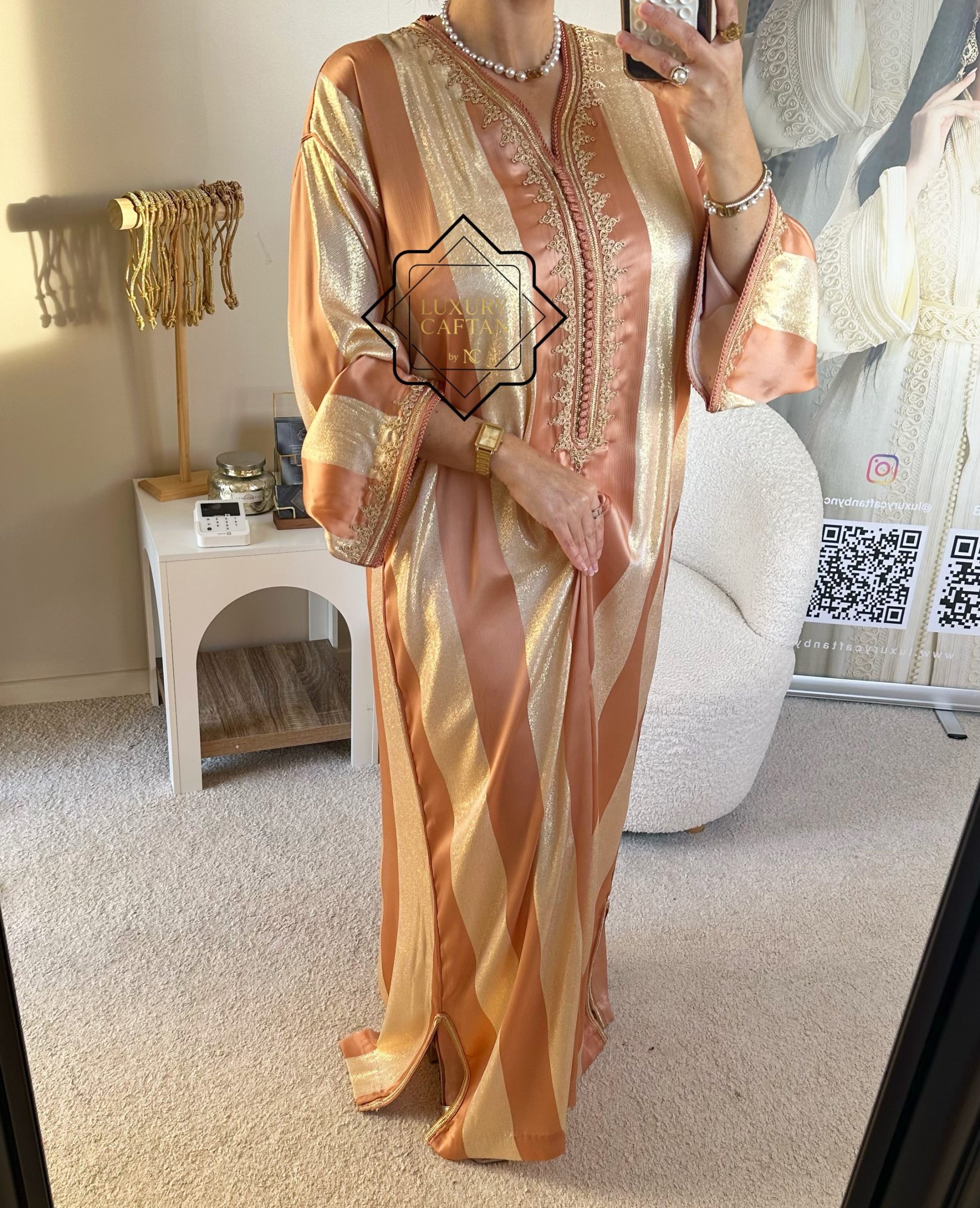 Nous acceptons les retours pour les caftans standards dans un délai de 14 jours après réception, à condition que les articles soient non portés et dans leur état d’origine. Les caftans sur mesure ne sont pas éligibles pour un retour, sauf en cas de défaut de fabrication. Pour toute demande de retour, veuillez nous contacter pour obtenir des instructions détaillées.