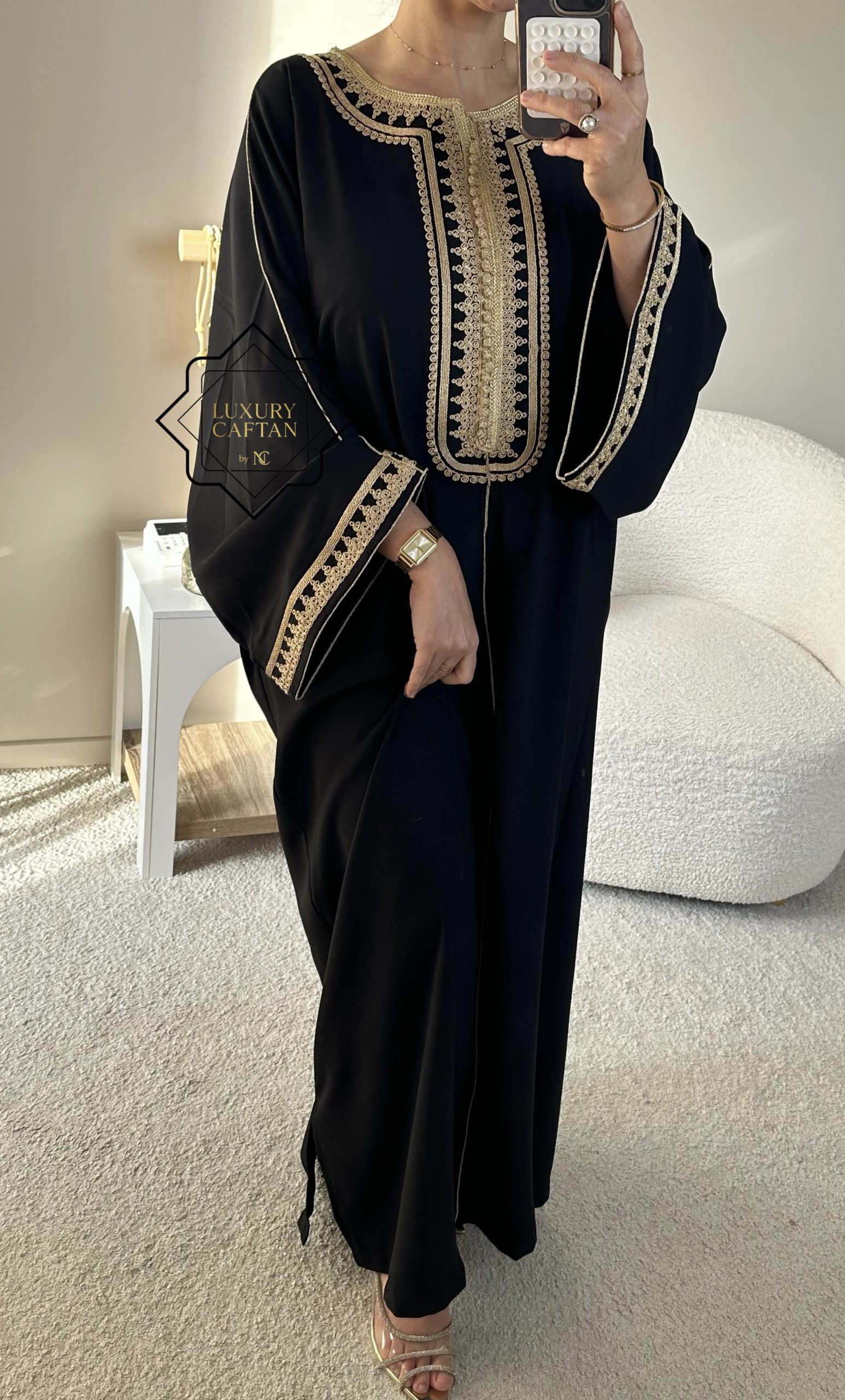 CAFTAN SOHANE NOIR COUTURE DORÉ